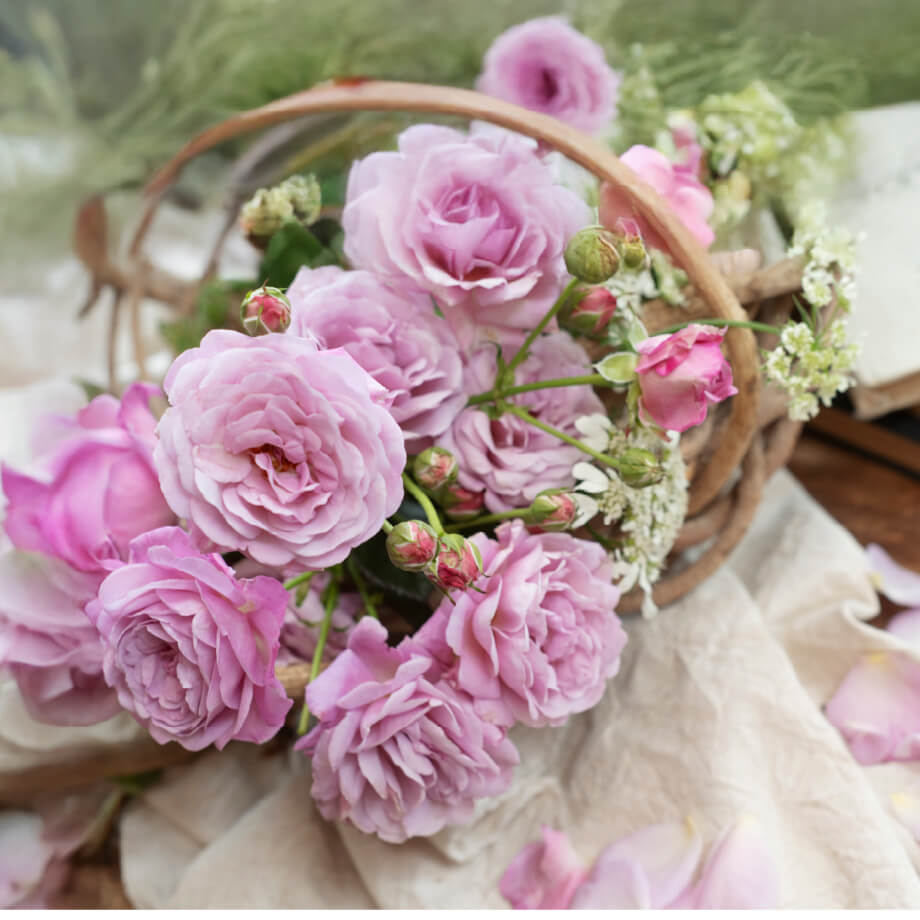 とげが少なく、細長い枝がふんわりとしたドーム状に茂るので、花壇の中心に。中輪の単花~3輪の房咲きで、たくさんの花が株全体に咲く。品種名の『あいの風』とは北陸の日本海に面した地域で、春から夏にかけて吹く、北東のさわやかな風のこと。万葉集の時代から、「幸せを呼ぶ風」として親しまれている。
