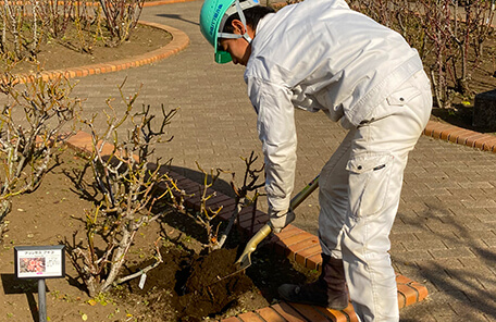 入社する前は、当社はローズガーデンの運営やバラの卸販売をしている会社という認識でしたが、入社後はそれらに加えて造園部が様々な現場で幅広く活躍していることを知り驚きました。