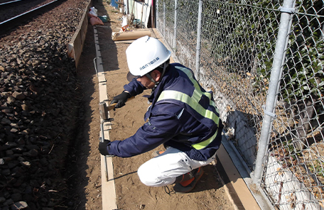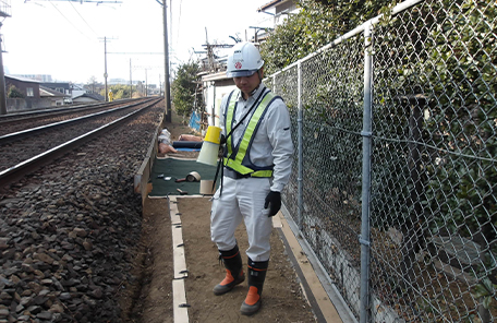 協力会社と一緒に鉄道沿線の樹木伐採や草刈り工事を担当しています。現場では重機等も稼働しますので安全管理を徹底し、事故が起きないよう努めています。また、工事現場調査をしてそのデータから見積書作成をし、工事現場が決まれば工事写真の撮影を含め書類関係の作成作業もあります。