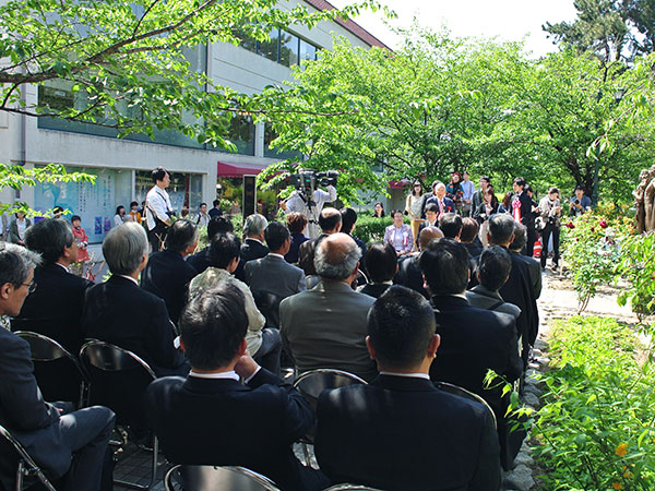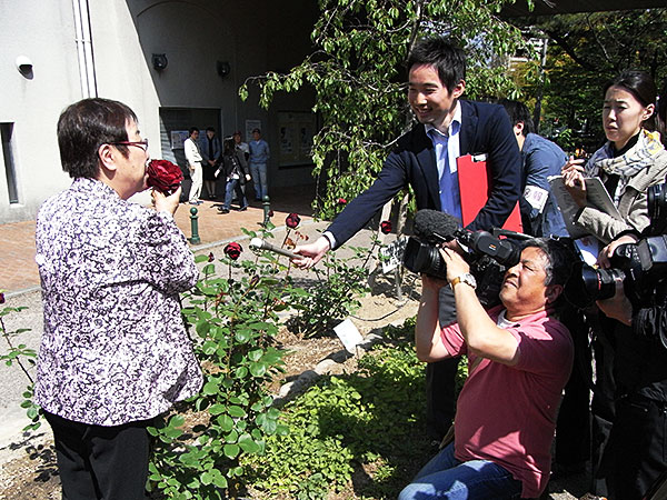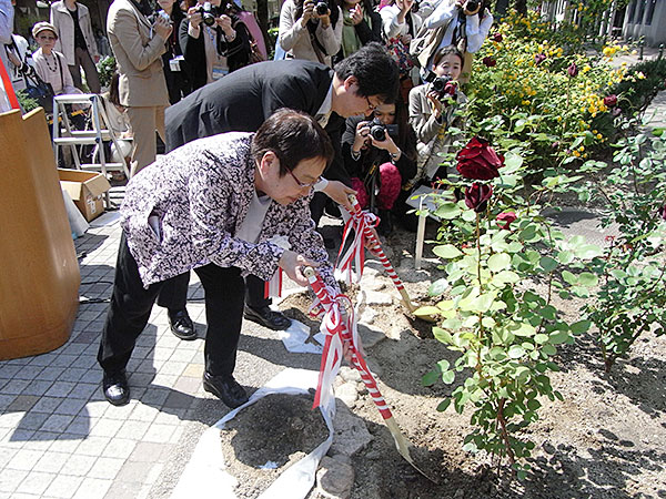 当社がバラの苗を宝塚市に寄贈した事により実現したもので、宝塚市議会議長 江原和明氏、宝塚歌劇団特別顧問 植田紳爾氏、元宝塚歌劇団トップスター 榛名由梨さんをはじめ多くのご来賓が臨席されて、盛大にとり行われました。