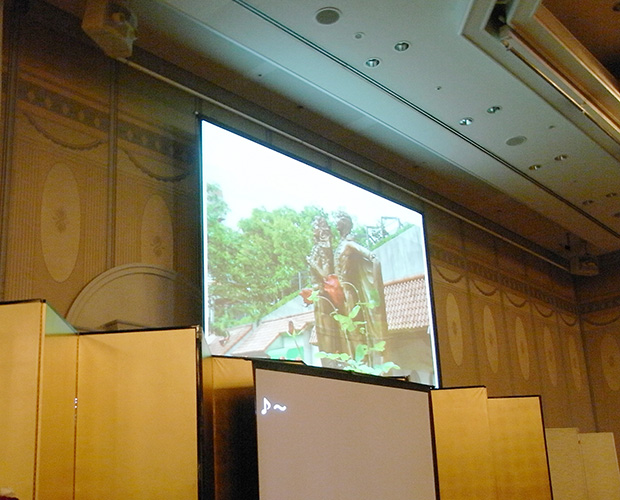 「ベルサイユのばら®シリーズ」についてのスライドが上映され、今回寄贈するバラについて紹介されました。その後、当社社長の金子芳和から中川智子宝塚市長へ目録を贈呈し、