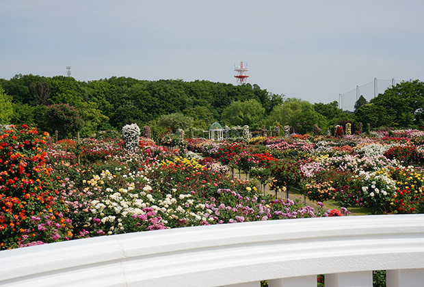 広大なバラ園を背景にオスカル、アントワネットと記念撮影ができる大人気のスポットですが、今までは一部生垣があって、バラ園全体を見渡すことができませんでした。