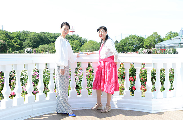 周囲の満開のバラに負けないオーラのお二人の登場で、ステージ上は一気に華やいだ雰囲気に。