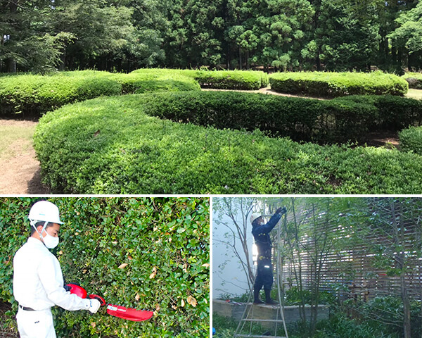 作業は、高木剪定・低木刈込・病害虫防除・施肥・伐採など。