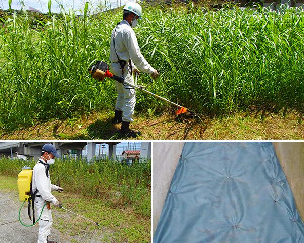 草刈り、除草剤散布、防草シート設置