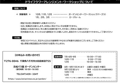 - 受講料は、ご予約後、ガーデンセンターレジ、またはお振込みにて1週間以内にお支払いください