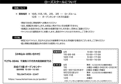 2025年度後期10~3月分 ローズスクールの申し込み受付中です!