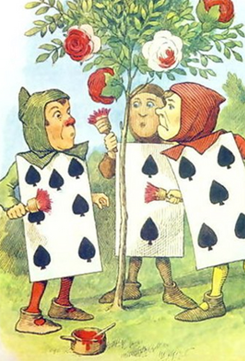 『不思議の国のアリス』で、トランプ兵たちが白いバラに